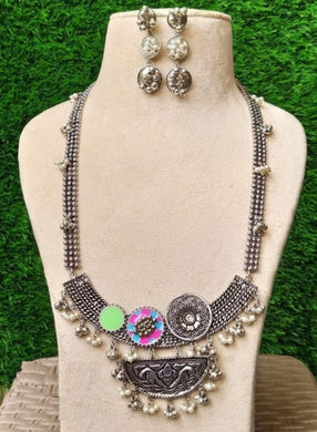 Silver Enamel Matt Finish Amarpali Long Necklace set