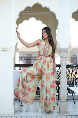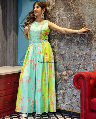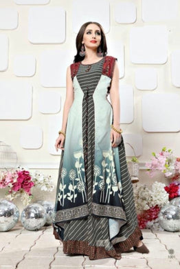 2 pc blue multicolor Long gown with detachable Jacket Rayon women clothing