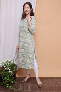 Olive Green chicken kari soft cotton straight kurta women clothing