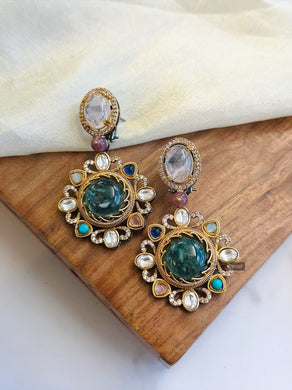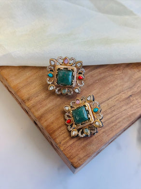 Multicolor Temple Gold Finish Stone Glass Stone jhumka cz earrings