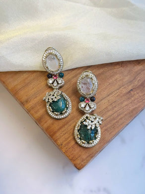 German silver Peacock multicolor Beads Pearl Chandbali statement Earrings