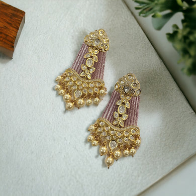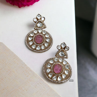 Moissanite Kundan Pink Dangling premium Earrings
