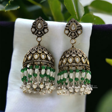 Green Moissanite pearl golden antique statement Jhumki earrings