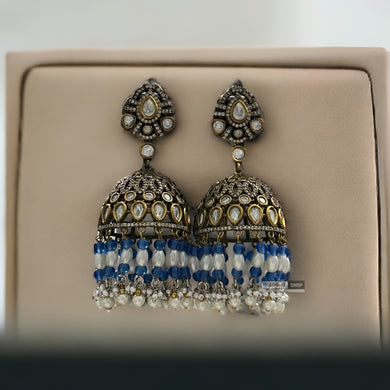 Blue Moissanite pearl golden antique statement Jhumki earrings