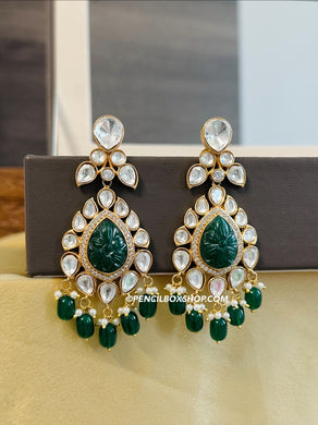 Moissanite Pearl Drop Premium Designer Carved Stone Dangling earrings
