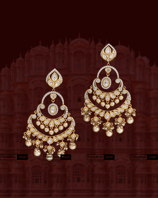 Firestone 92.5 German silver Fusion pachi Kundan Golden Jhumka Earrings