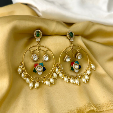 Kundan Statement Pearl Drop Chandbali Jhumka earrings