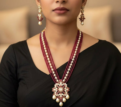 Long Multicolor Polki Sleek necklace set with maangtikka