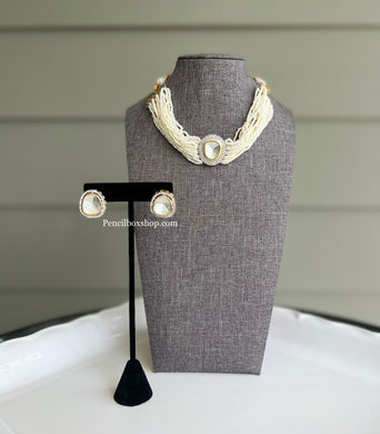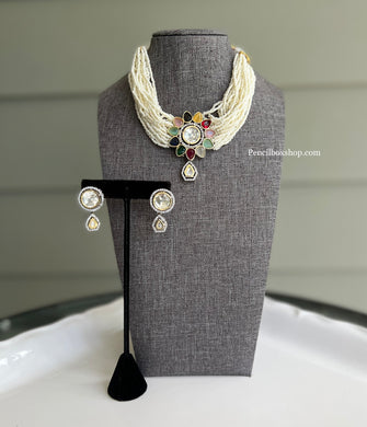Polki Premium silver foiled Multicolor stone Pearl Choker necklace set