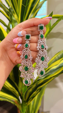 Premium statement Emerald Green Silver Long Dangling Earrings