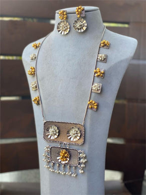 Contemporary Silver Golden Beads Fusion Long Necklace set