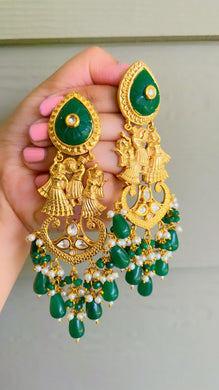 Statement Tyaani Kundan hydro beads Long danglers earrings