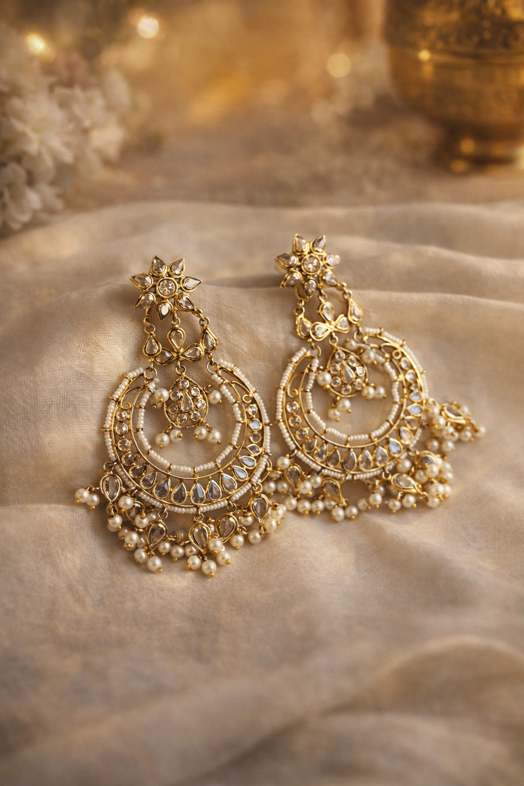 14k Gold plated White Flower Chandbali Jhumka earrings