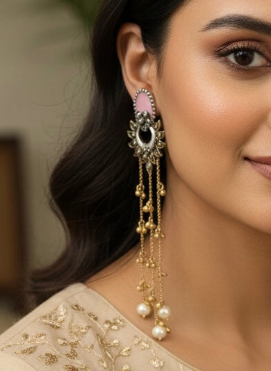 92.5 coated Long Pearl Fusion Light weight Kashmiri earrings.