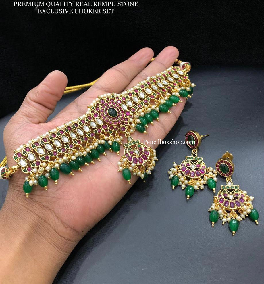 Multicolor Kemp Stone premium Quality Choker necklace set for women.