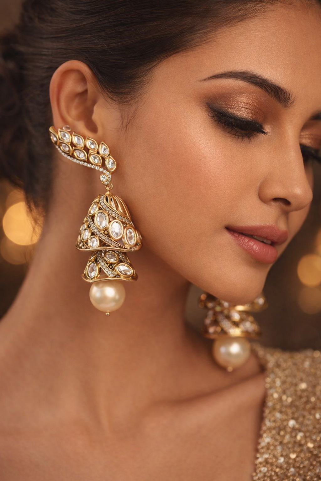 Premium Tayani 22k Gold Plated Drop Jhumka Dangling Earrings Earcuff