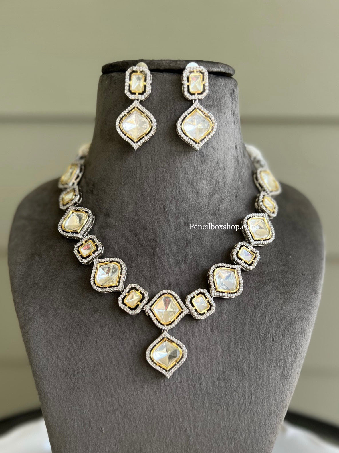 Uncut Kundan Delicate Cz Silver Foiled Necklace set.This can be so perfect for any parties , baby showers , house warming parties and weddings .